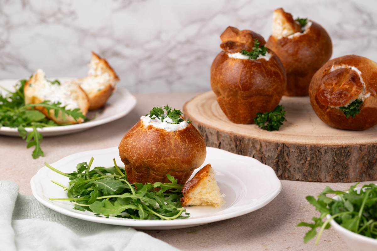 Brioche-Muffins gefüllt mit Ziegenkäse und Frischkäse